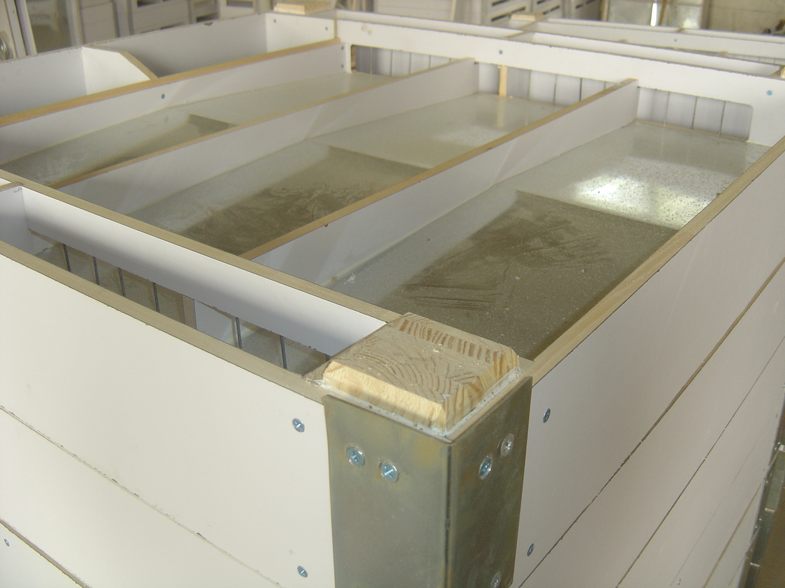 為了達(dá)到篩格使用壽命長(zhǎng)、配合精度高、密封性能好、使用方便等目標(biāo),對(duì)制作過程嚴(yán)格要求。如:一、篩格全部使用椴木或其他優(yōu)質(zhì)木材,經(jīng)水煮、汽蒸處理,使篩格不變形開裂,結(jié)實(shí)耐用;二、篩格關(guān)鍵連接部位,采用多鉚或者連環(huán)鉚結(jié)構(gòu)形式,同時(shí)使用鋁合金或者鋼包角,使篩格受力更加合理,延長(zhǎng)使用壽命;三、木質(zhì)結(jié)構(gòu)經(jīng)過砂光處理,使外觀更加光滑美觀;四、為了增加篩格使用壽命及防止物料竄漏,底板折彎后鑲?cè)肽静睦?,并用密封膠密封;五、在篩芯與篩框結(jié)合和配合的部位,加粘毛氈,更加強(qiáng)了密封效果;六、篩格采用不等高設(shè)計(jì),減少了堵料的可能性;七、單體篩篩格包角采用凸出結(jié)構(gòu),使上層篩格嵌入下層篩格的包角里,使上下層篩格成為統(tǒng)一的工作整體;八、設(shè)計(jì)了篩芯傾斜結(jié)構(gòu),有利于篩上物的運(yùn)動(dòng),延長(zhǎng)清理周期。